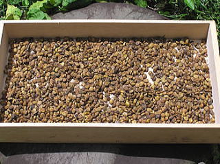 右ー実 90g 7×5㎜位 石のような硬さ。 左ー皮 60g 古くには皮の油分は「木蝋」を作ったそう。 近年になって中の実を飲料に製法でしょうか。 「木蝋作り」 も考えにはありましたが、 考えただけで挫折です。 |