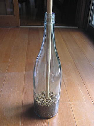 一升瓶に入れ 気長に棒で突っついて。 米の精米のような作業。 戦時中?を・・・。 かなり労力の必要な作業。 家庭用精米機があると 容易にできるようです。 令和3年(2021)9月 家庭用精米機を購入しました。 |