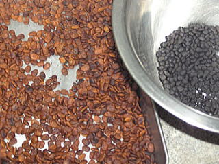 炒り具合 左ーこれくらい? 右ー焦がし 少し柔らかく歯でかめるようになりました。 |